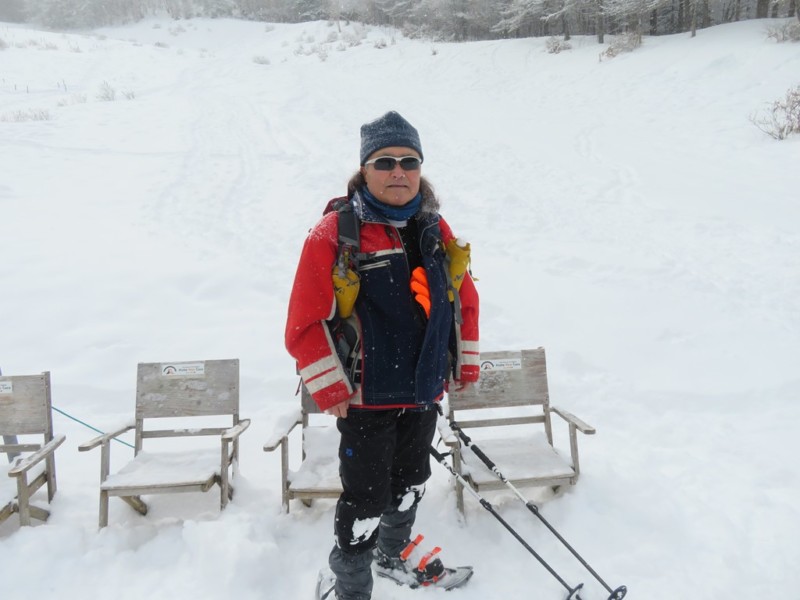 入笠山は気温 -12℃。雪で展望は無かったが、前夜からの雪で、スノーシューには絶好の雪質。