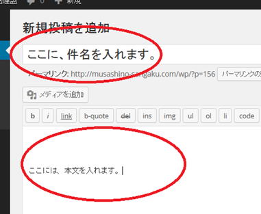 (2)記事の件名と本文を入力します。