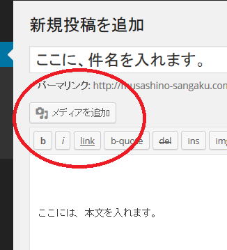 (3)写真を入れるには、「メディアを追加」をクリックします。