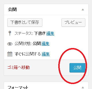 (9)右上の公開メニューにある「公開」をクリックする。